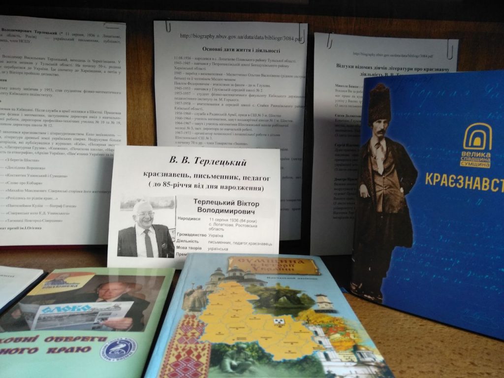До ювілейної дати дослідника рідного краю на абонементі наукової літератури (к. 113) організовано тематичну викладку літератури «В. В. Терлецький – краєзнавець, письменник, педагог».
