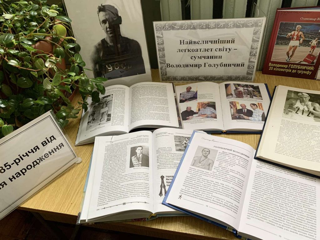 Наукова бібліотека до 85-річчя від дня народження видатного сумчанина підготувала викладку літератури «Найвеличніший легкоатлет світу – сумчанин Володимир Голубничий!» (читальний зал № 1 – 109 аудит.).