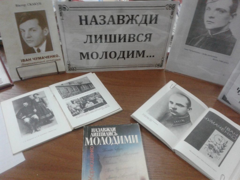 1 грудня минає 100 років від дня народження цієї яскравої особистості. З нагоди ювілейної дати в читальному залі № 1 (аудит. 109) представлена викладка літератури «Назавжди лишився молодим…». Серед експонованих матеріалів – змістовне літературно-художнє видання «Іван Чумаченко. Літературний портрет», автором якого є наш земляк, відомий український поет, літературознавець, член Національної спілки письменників України Віктор Скакун.