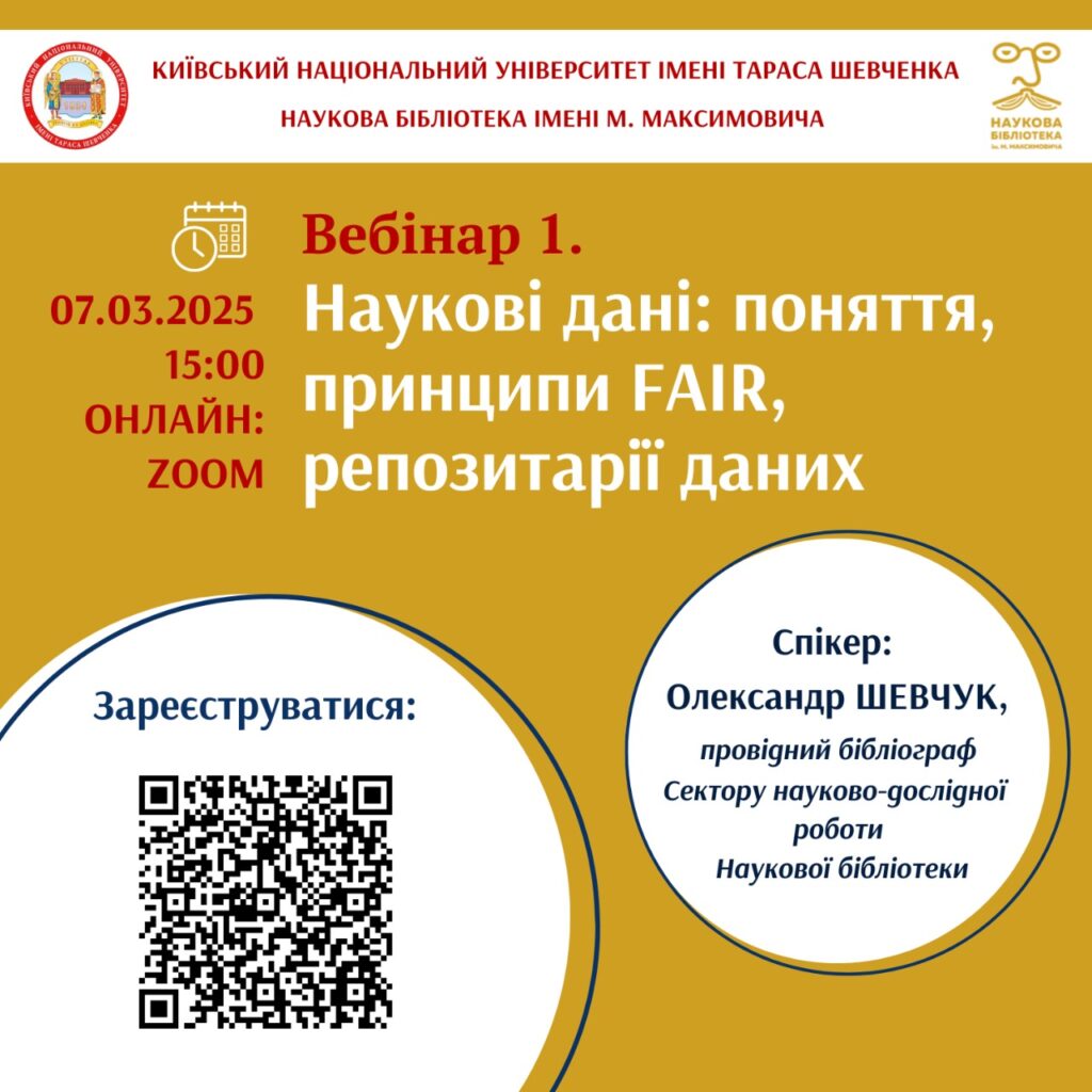 Запрошуємо наукову спільноту СумДПУ долучитися до вебінара «Наукові дані: поняття, принципи FAIR, репозитарії даних».